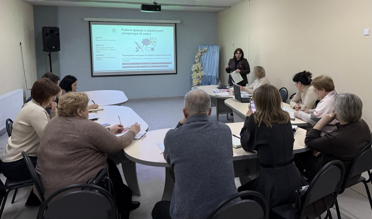 Лілія Кузьмич презентувала дидактичні матеріали «Робочі аркуші з української літератури для учнів 6 класу» — структурований інструмент для формування читацької компетентності, аналітичного мислення та роботи з текстом у форматі НУШ.