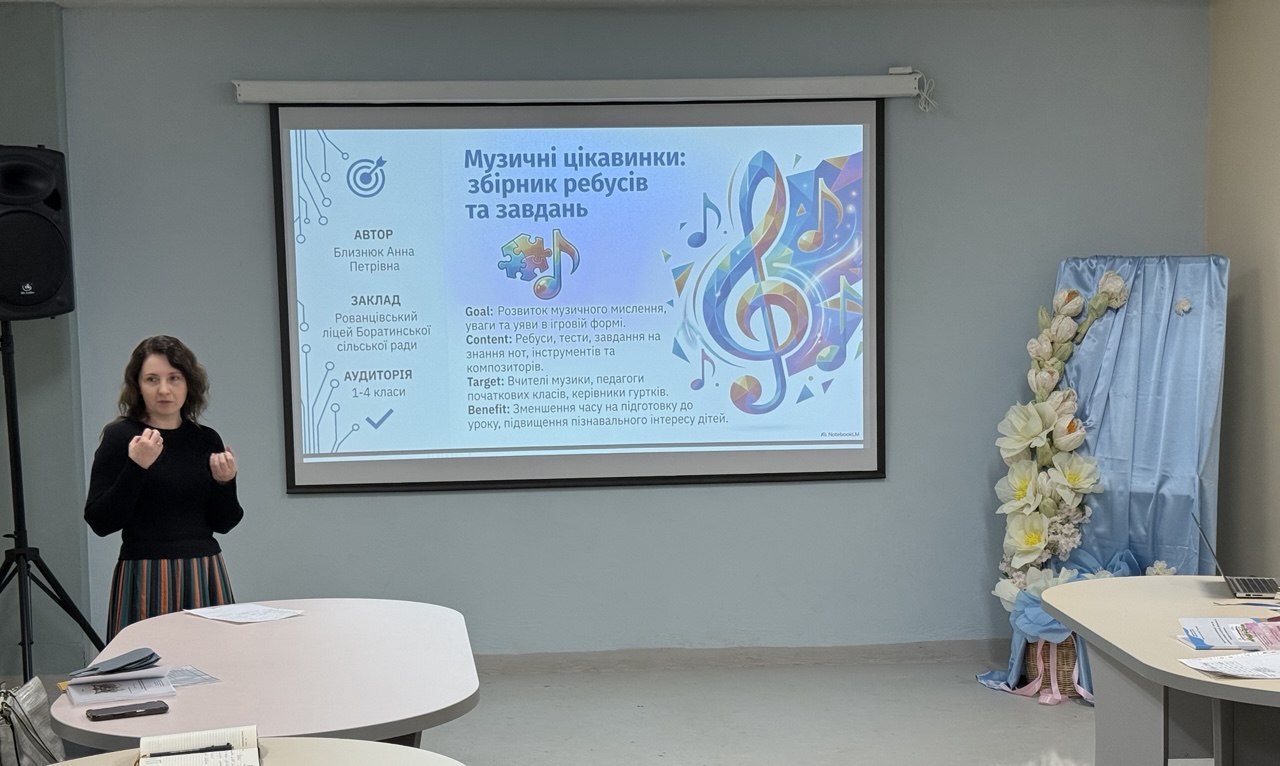Близнюк Анна презентувала збірник «Музичні цікавинки: ребуси, тести, завдання», що поєднує ігрові методи з формуванням музичної грамотності.