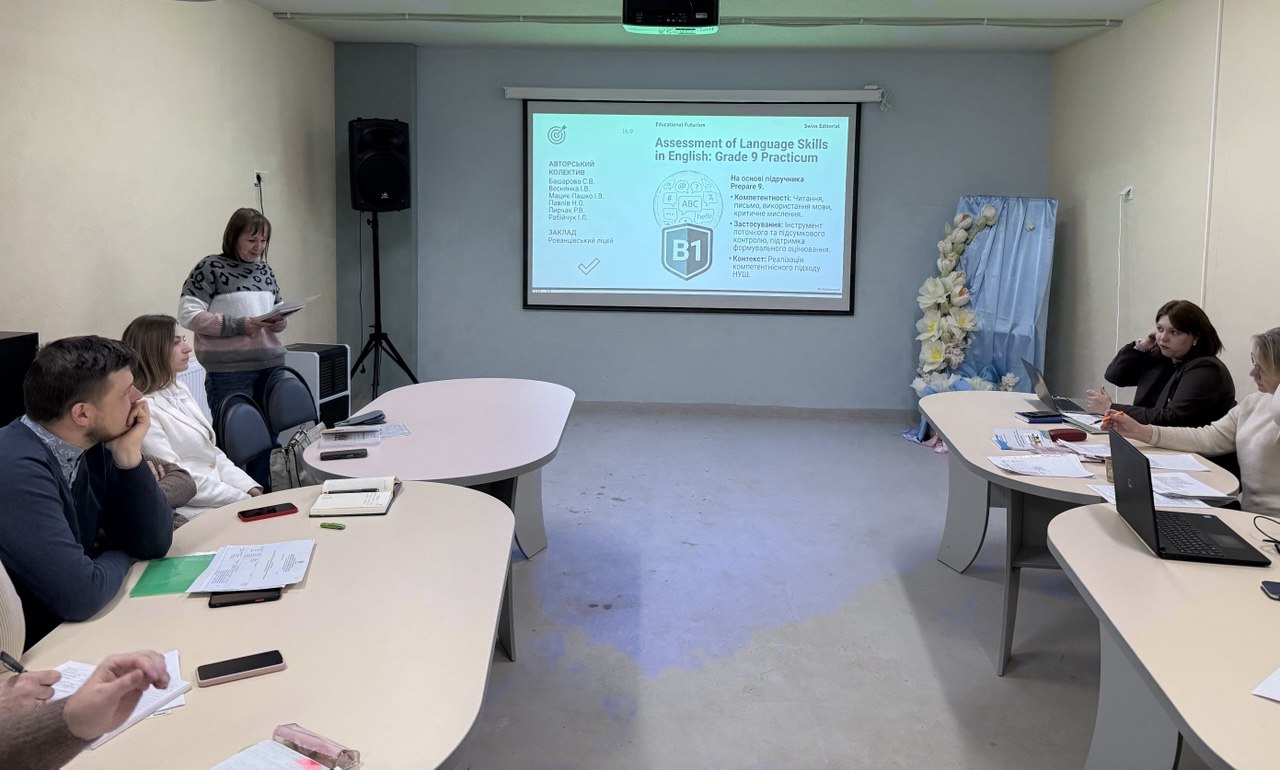 Команда вчителів іноземної мови — Башарова Світлана, Веснянка Іванна, Мацик-Пашко Ірина, Павлів Наталія, Пирчак Руслана, Рабійчук Ірина — представила практикум «Assessment of Language Skills in English: A Practicum for Grade 9», розроблений на основі підручника. Видання містить інструменти для комплексного оцінювання мовних навичок учнів.